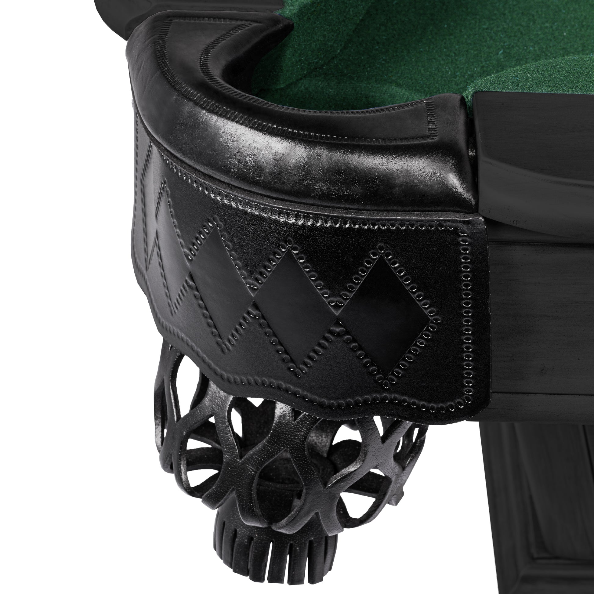 The Imperial Resolute Series is unlike any other Imperial table offering. Made of solid Aspen wood, it boasts two sizes, two finish options (Kona/Black & Whiskey) and three leg styles for a total of 12 table combinations. This versatility lends itself to an abundance of design styles and preferences so that it can blend in with virtually any living space. The K66 cushion rubber provides great rebound and the 1-inch backed K pattern backed slate provides a true roll. The perfect compliment to the Resolute Pool table is adding the optional black wall rack.