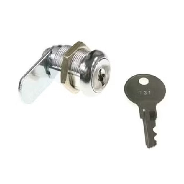Includes one key, 1-1/4 inch cam, cam screw, and mounting nut.